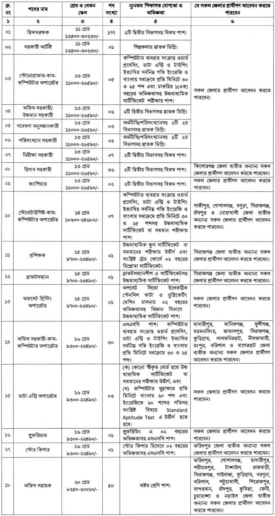 আবেদন ফি: টেলিটক প্রি-পেইডের মাধ্যমে ১-২ নং পদের জন্য ৩৩৫ টাকা, ৩-১৭ নং পদের জন্য ২২৩ টাকা, ১৮ নং পদের জন্য ১১২ টাকা অফেরতযোগ্য হিসেবে ৭২ ঘণ্টার মধ্যে পাঠাতে দিতে হবে।