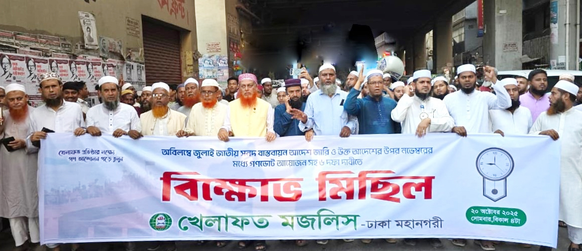 জুলাই সনদ বাস্তবায়ন আদেশ জারি ও গণভোটসহ ৬ দফা দাবিতে খেলাফত মজলিসের বিক্ষোভ