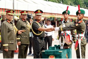 ৮৪তম বিএমএ দীর্ঘমেয়াদি কোর্সের রাষ্ট্রপতি কুচকাওয়াজে সালাম গ্রহণ করেন ভারতীয় সেনাবাহিনী প্রধান জেনারেল মনোজ পান্ডে : আইএসপিআর
