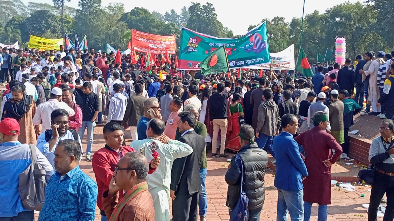 পৌষের সকালে শীত উপেক্ষা করে জাতীয় স্মৃতিসৌধে প্রবেশের অপেক্ষা করছিলেন হাজারো জনতা। ভোরের আলো ফুটতেই শহীদদের প্রতি শ্রদ্ধা জানান রাষ্ট্রপতি মো. সাহাবুদ্দিন, প্রধান উপদেষ্টা মুহাম্মদ ইউনূস এবং বাংলাদেশে সফররত পূর্ব তিমুরের প্রেসিডেন্ট হোসে রামোস।
