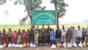 ব্রিগেড কেরানীগঞ্জ, ঢাকা কটন মিল স্কুল অ্যান্ড কলেজ সংলগ্ন এলাকা, বাসাবো সবুজবাগ; পাবর্ত্য চট্টগ্রামের খাগড়াছড়ি রিজিয়ন কর্তৃক রামগড়, মানিকছড়ি, গুইমারা উপজেলায় সর্বমোট ৬,১৩০টি পরিবারের মধ্যে ভাতের চাল, পোলাও চাল, চিনিগুড়া চাল, ডাল, আটা, চিনি, তৈল, সেমাই, নুডুলস, চা পাতা, দুধ, লবণ, আলু, পিঁয়াজ ও মুরগিসহ নিত্য প্রয়োজনীয় খাদ্য সামগ্রী বিতরণ করা হয়।