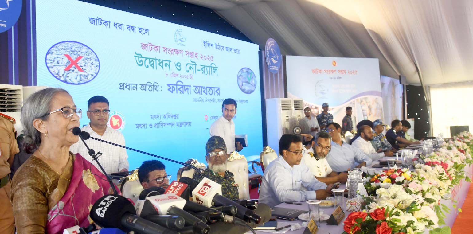 আগামী ১৪ এপ্রিল পর্যন্ত জাটকা সংরক্ষণ সপ্তাহে জাটকা নিধন বন্ধে সর্বস্তরের মানুষকে এগিয়ে আসার আহ্বান জানান উপদেষ্টা। এদিন থেকে দেশের ইলিশ সমৃদ্ধ ২০টি জেলায় (ঢাকা, মানিকগঞ্জ, রাজবাড়ী, শরীয়তপুর, মাদারীপুর, ফরিদপুর, মুন্সীগঞ্জ, বরিশাল, ভোলা, পটুয়াখালী, পিরোজপুর, বরগুনা, ঝালকাঠী, চাঁদপুর, লক্ষীপুর, ফেনী, নোয়াখালী, চট্টগ্রাম, বাগেরহাট ও সিরাজগঞ্জ) জাটকা সংরক্ষণ সপ্তাহ ২০২৫ উদযাপিত হচ্ছে।