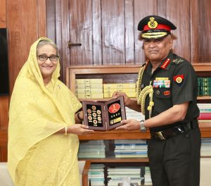 মঙ্গলবার সন্ধ্যায় প্রধানমন্ত্রীর জাতীয় সংসদ ভবন কার্যালয়ে তার সঙ্গে সৌজন্য সাক্ষাত করেন ভারতীয় সেনাবাহিনী প্রধান জেনারেল মনোজ পাণ্ডে। এ সময় প্রধানমন্ত্রী দারিদ্র্য নিরসনে এ অঞ্চলের দেশগুলোকে এক সঙ্গে কাজ করার ওপর গুরুত্বারোপ করেন।