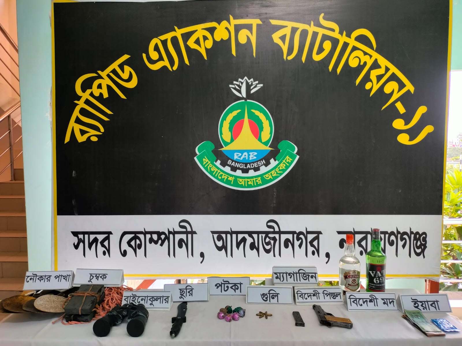 নারায়ণগঞ্জে র‌্যাবের বিশেষ অভিযান খুনি-নৌডাকাত গ্রেফতার, অস্ত্র উদ্ধার