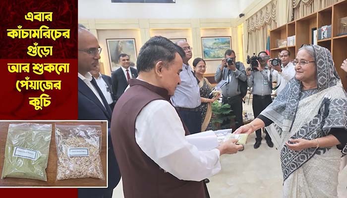 অর্থমন্ত্রীসহ কর্মকর্তাদের কাঁচামরিচের গুঁড়ো ও শুকনো পেঁয়াজের কুচি উপহার প্রধানমন্ত্রীর