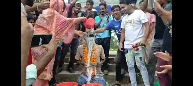 দুধ দিয়ে গোসল আর বন্ধুদের ফুলের মালা পড়ে প্রেমের যন্ত্রাণা থেকে মুক্তি