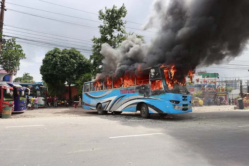 ঢাকার রাজপথে বিরোধীদের অবস্থান, সংঘর্ষ বাসে আগুন
