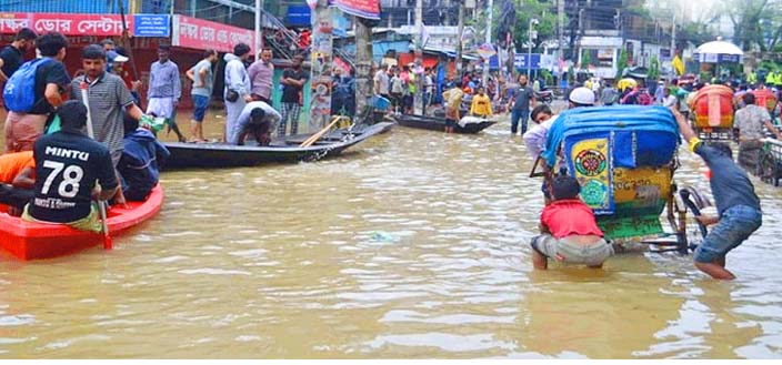 আষাঢ়ে বর্ষণে সিলেট নগরী জলমগ্ন
