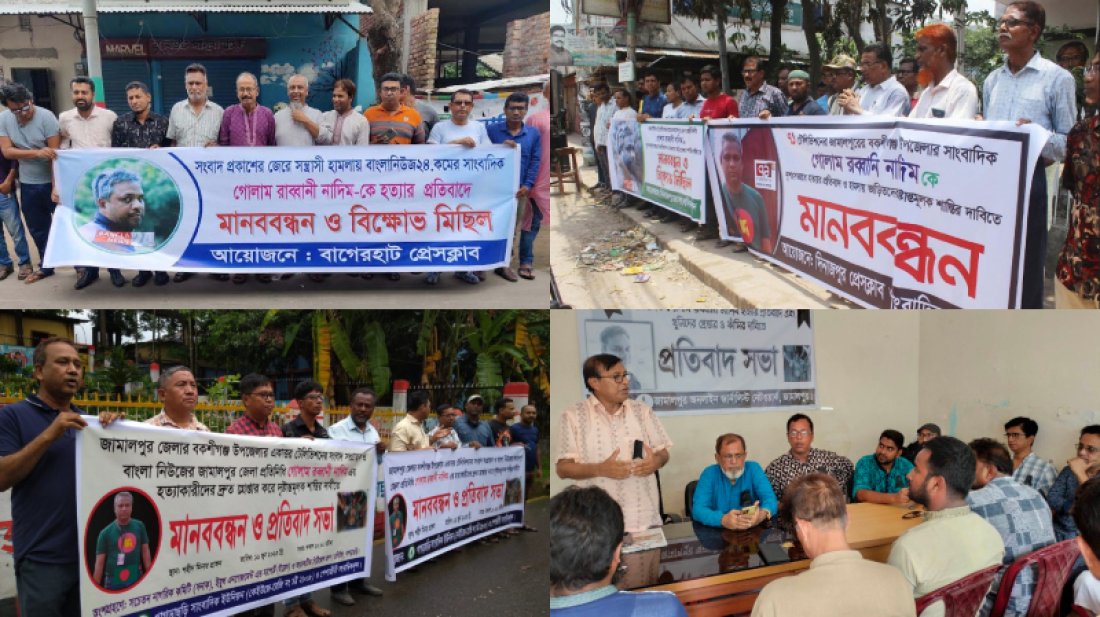ভয়েস ডিজিটাল ডেস্ক সাংবাদিক হত্যায় দেশের বিভিন্ন স্থানে প্রতিবাদ সমাবেশ অনুষ্ঠিত হয়েছে। সমাবেশ থেকে জড়িতদের দ্রুত গ্রেপ্তার এবং দৃষ্টান্তমূলক শাস্তির