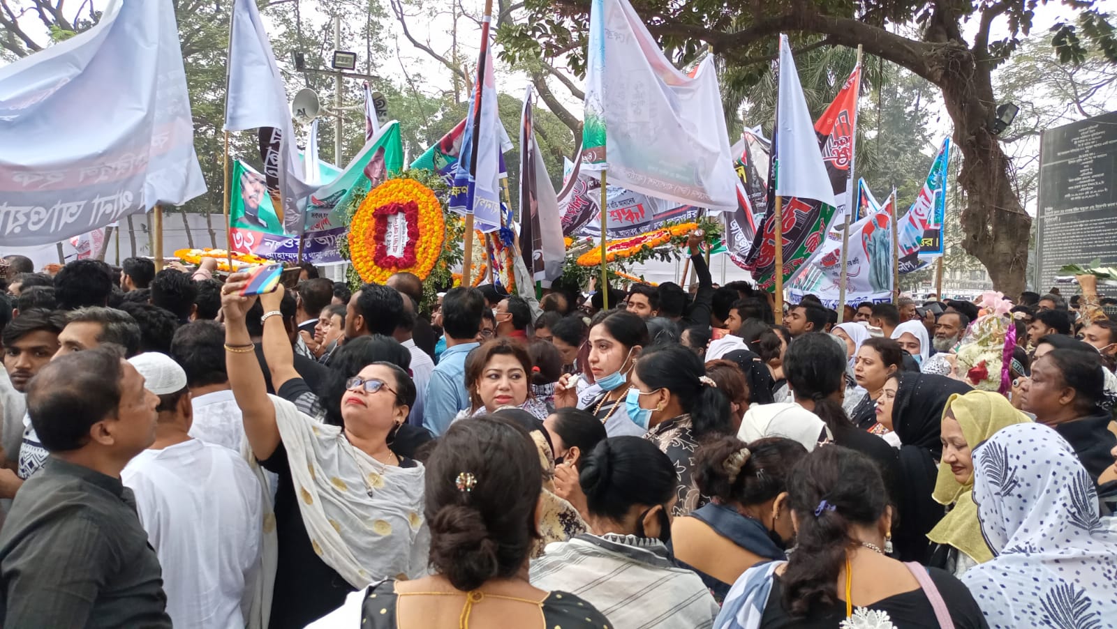 ঢাকার শহীদমিনার আর বইমেলা ঘিরে মানব ঢল সময় গড়ায় বাড়ে মানুষ। বাড়ে শ্রদ্ধার ফুল। মানুষের সেই ঢলে যেমন ছিলেন