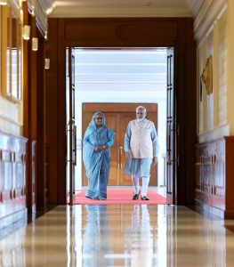 শুক্রবার অপরাহ্নে ভারতের রাজধানী নয়াদিতল্লীতে প্রধানমন্ত্রী নরেন্দ্র মোদির বাস ভবনে বাংলাদেশের প্রধানমন্ত্রী শেখ হাসিনার মধ্যে দ্বিপাক্ষিক বৈঠক অনুষ্ঠিত হয়েছে।